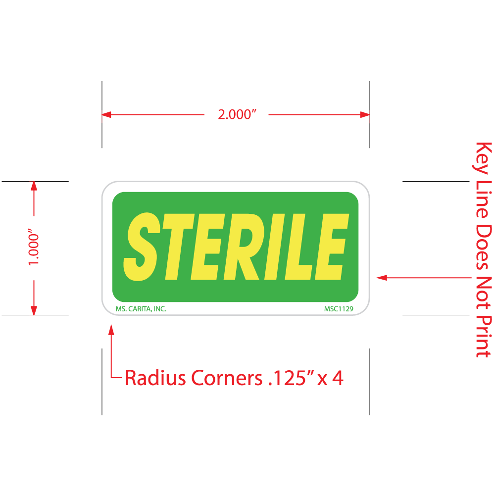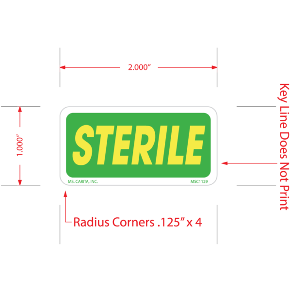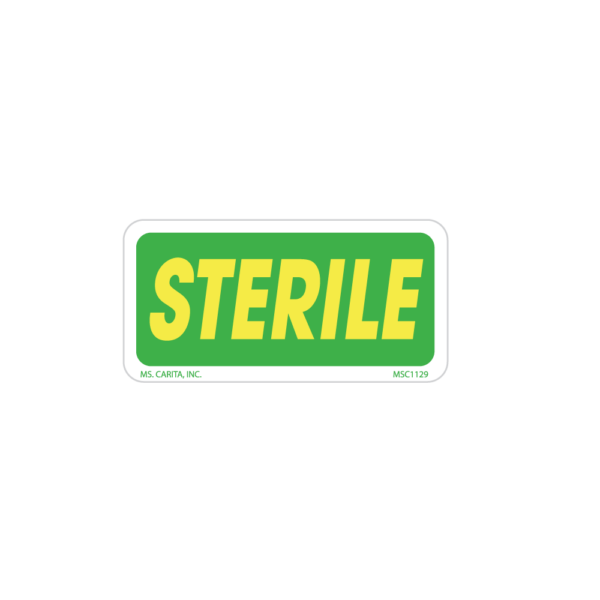 Green and Yellow STERILE pressure sensitive label printed on a bright white 52# ultra-smooth coated paper with a general purpose permanent adhesive. Designed to grab an individual’s attention and deliver the message.