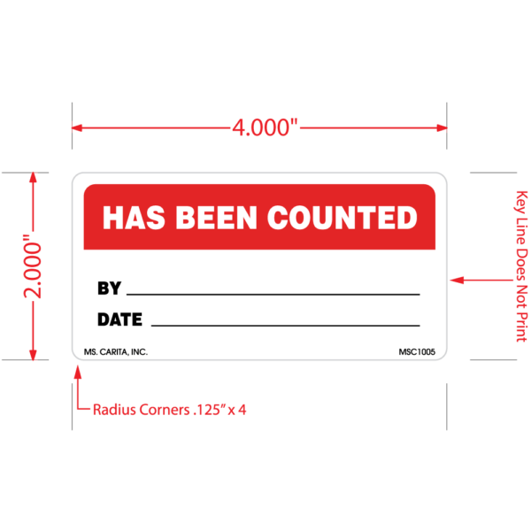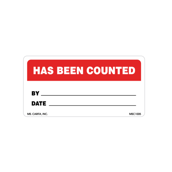 Red and Black HAS BEEN COUNTED pressure sensitive label printed on a bright white 52# ultra-smooth coated paper with a general purpose permanent adhesive. Streamlines inventory management with accurate product storage & tracking throughout any retail or warehouse operation.