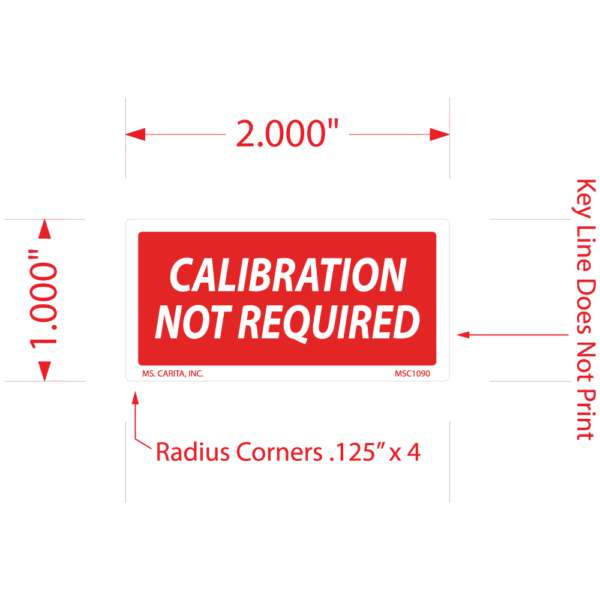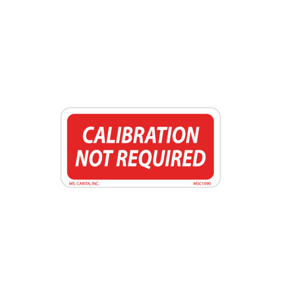 Red and White CALIBRATION NOT REQUIRED pressure sensitive label printed on a bright white 52# ultra-smooth coated paper with a general purpose permanent adhesive. Ensures equipment is properly calibrated. Easy to see and read.