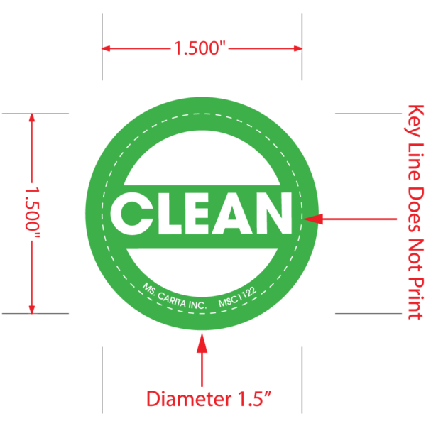 Green and White CLEAN pressure sensitive label printed on a bright white 52# ultra-smooth coated paper with a general purpose permanent adhesive. Identifies various stages of the production, manufacturing and testing processes.